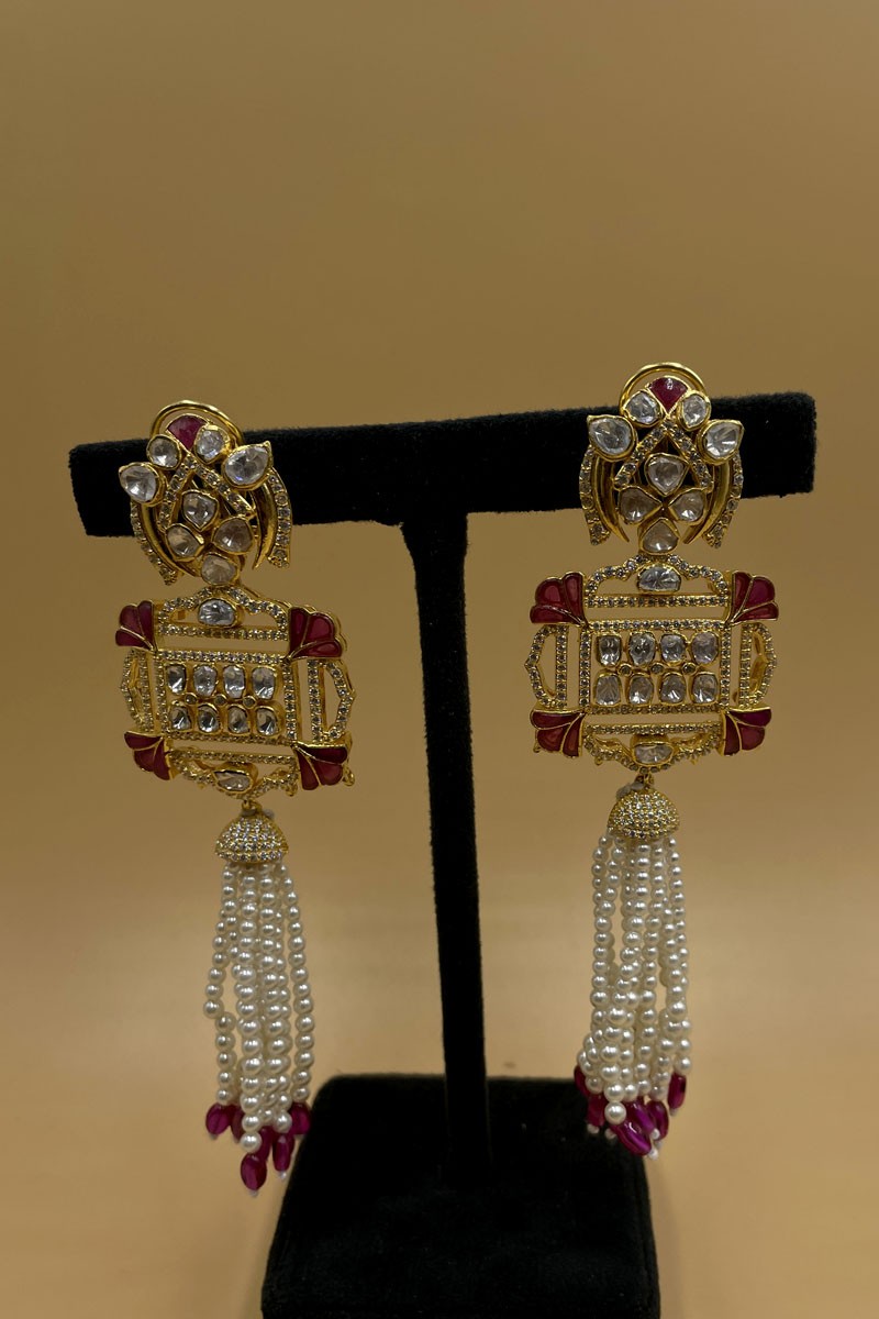 Polki : It has an Excellent Lustre of Moissanite Polkis which are the best substitute for Real Polkis. These polkis have Silver Daak at the Backside and are set in an open setting.