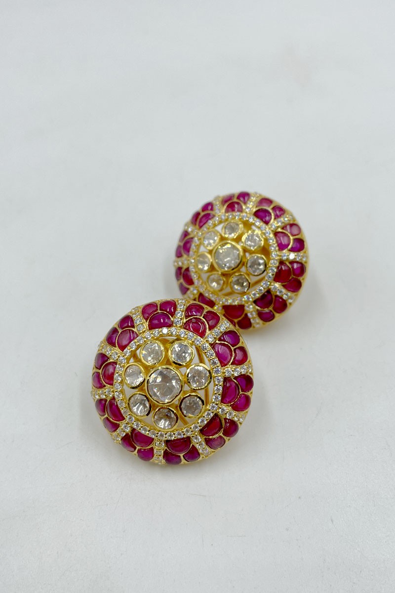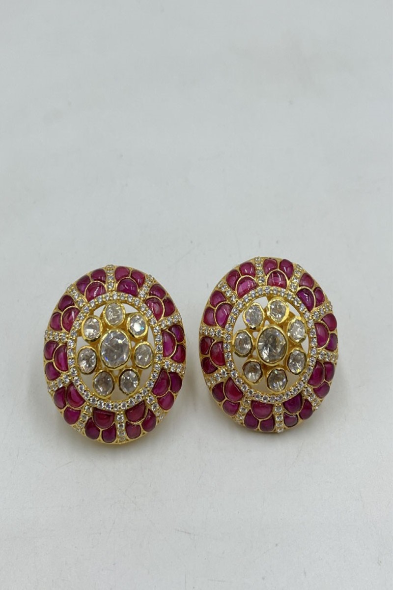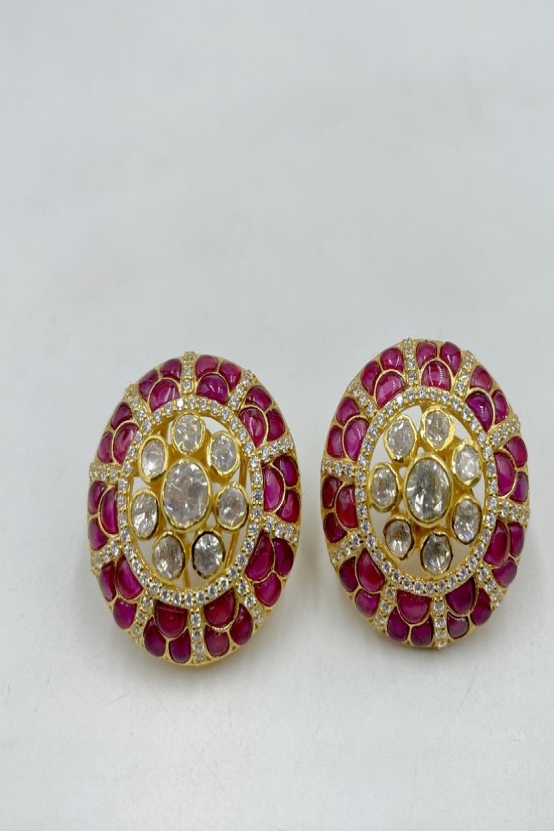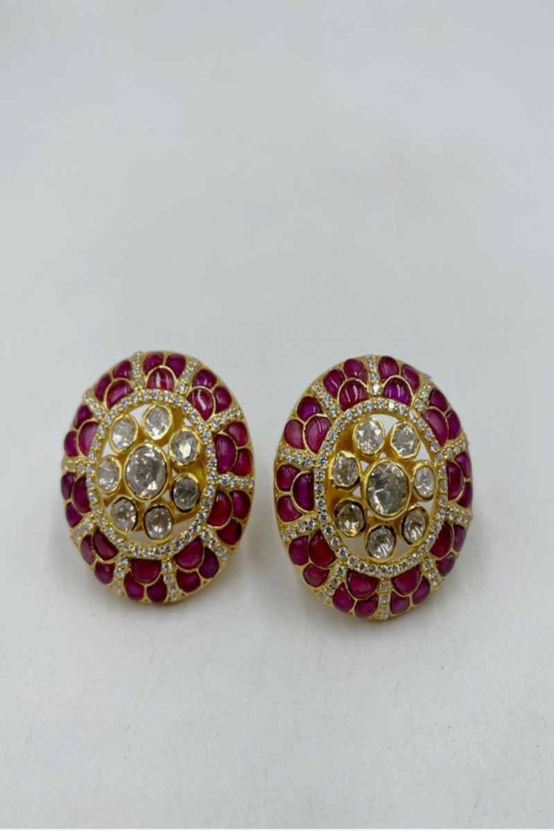 Polki : It has an Excellent Lustre of Moissanite Polkis which are the best substitute for Real Polkis. These polkis have Silver Daak at the Backside and are set in an open setting.
