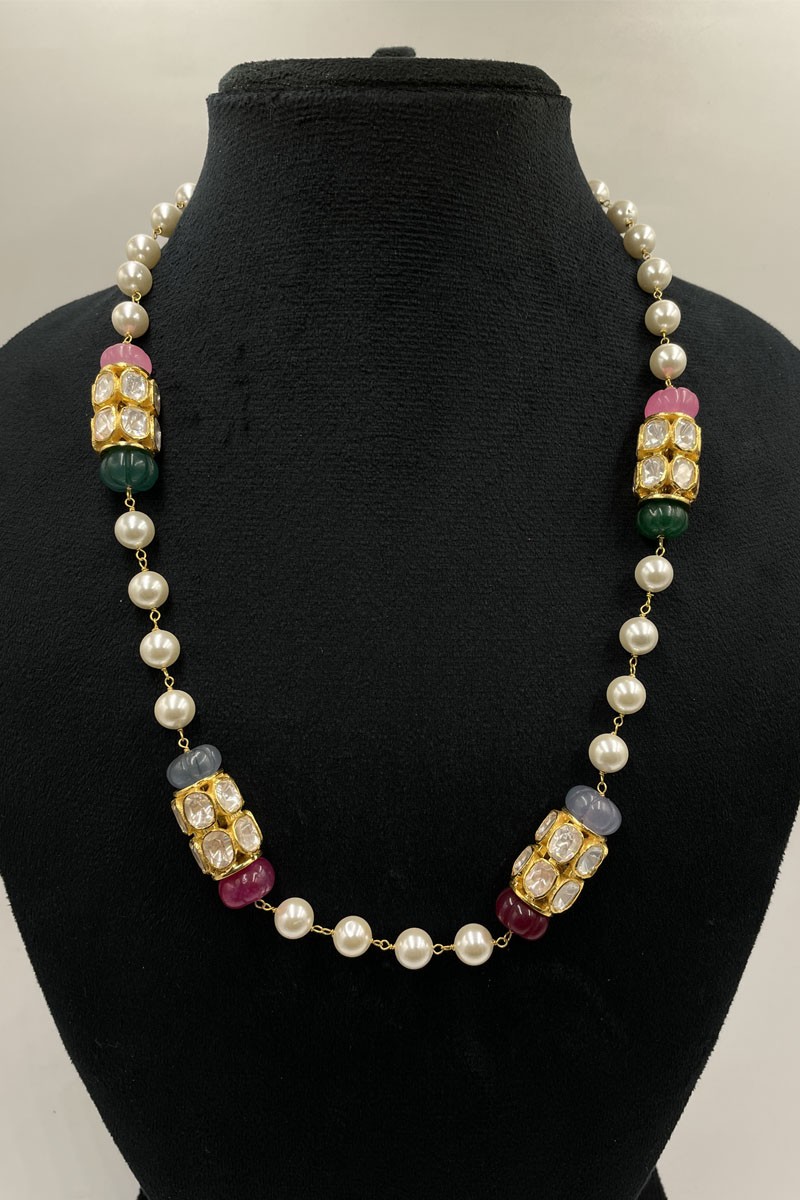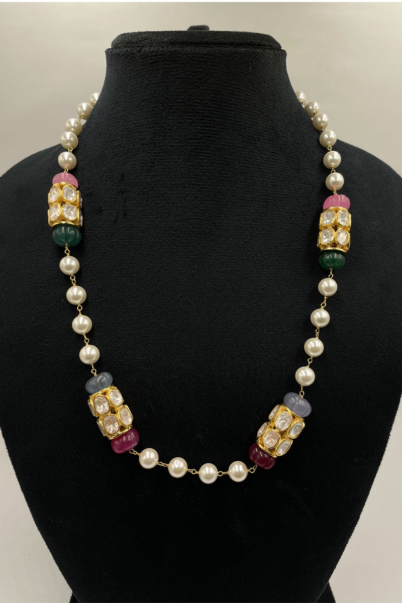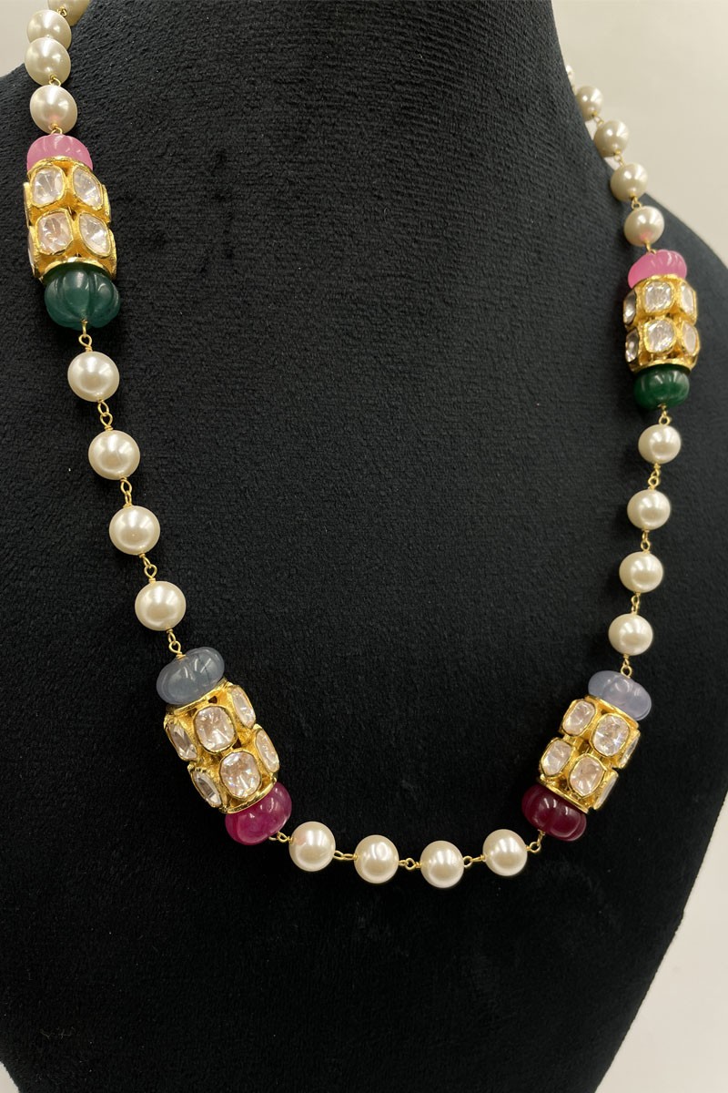 92.5 Silver Moissanite Polki Mala Necklace Set, Wedding Jewelry, Bridal Jewelry, Silver Necklace Natural Green Pink Blue Red Beads And Peals Chokar Necklace And Earrings Uncut Moissanite Polki Necklace.