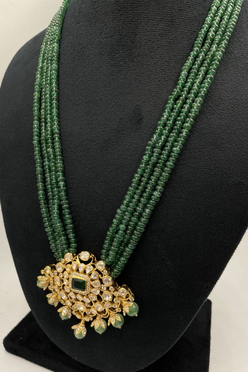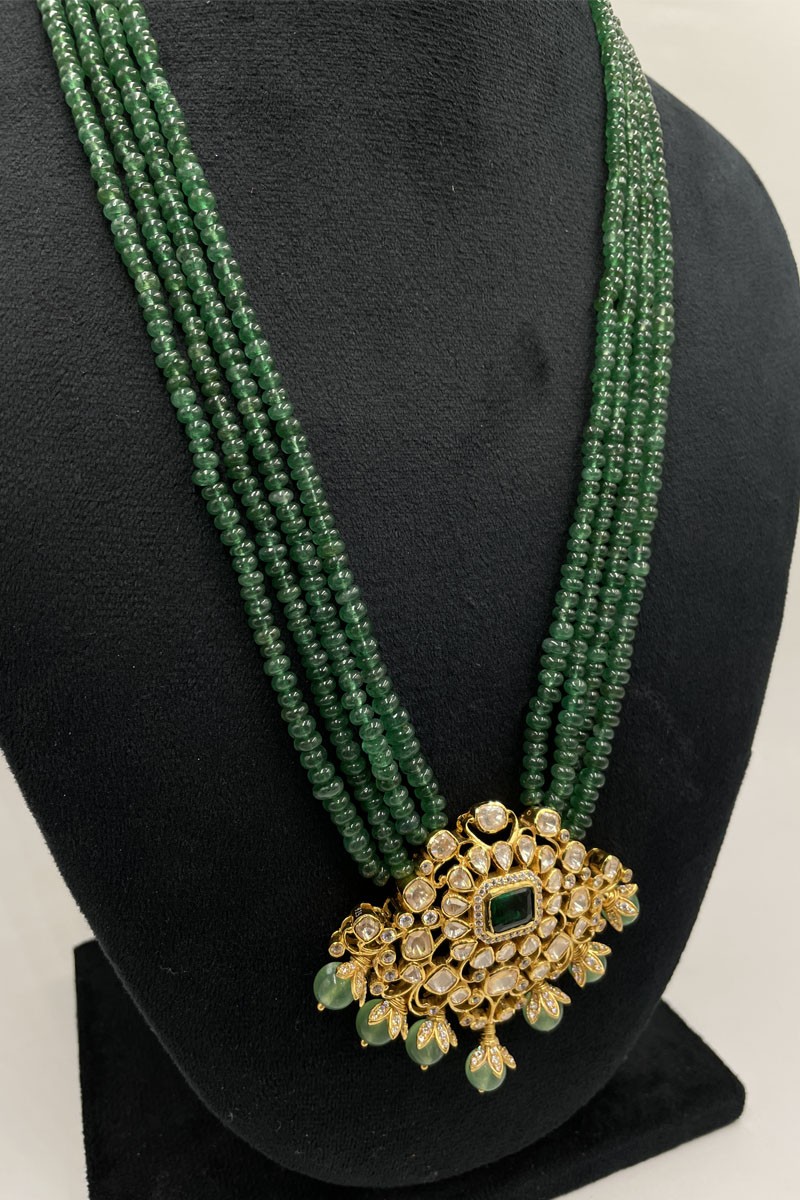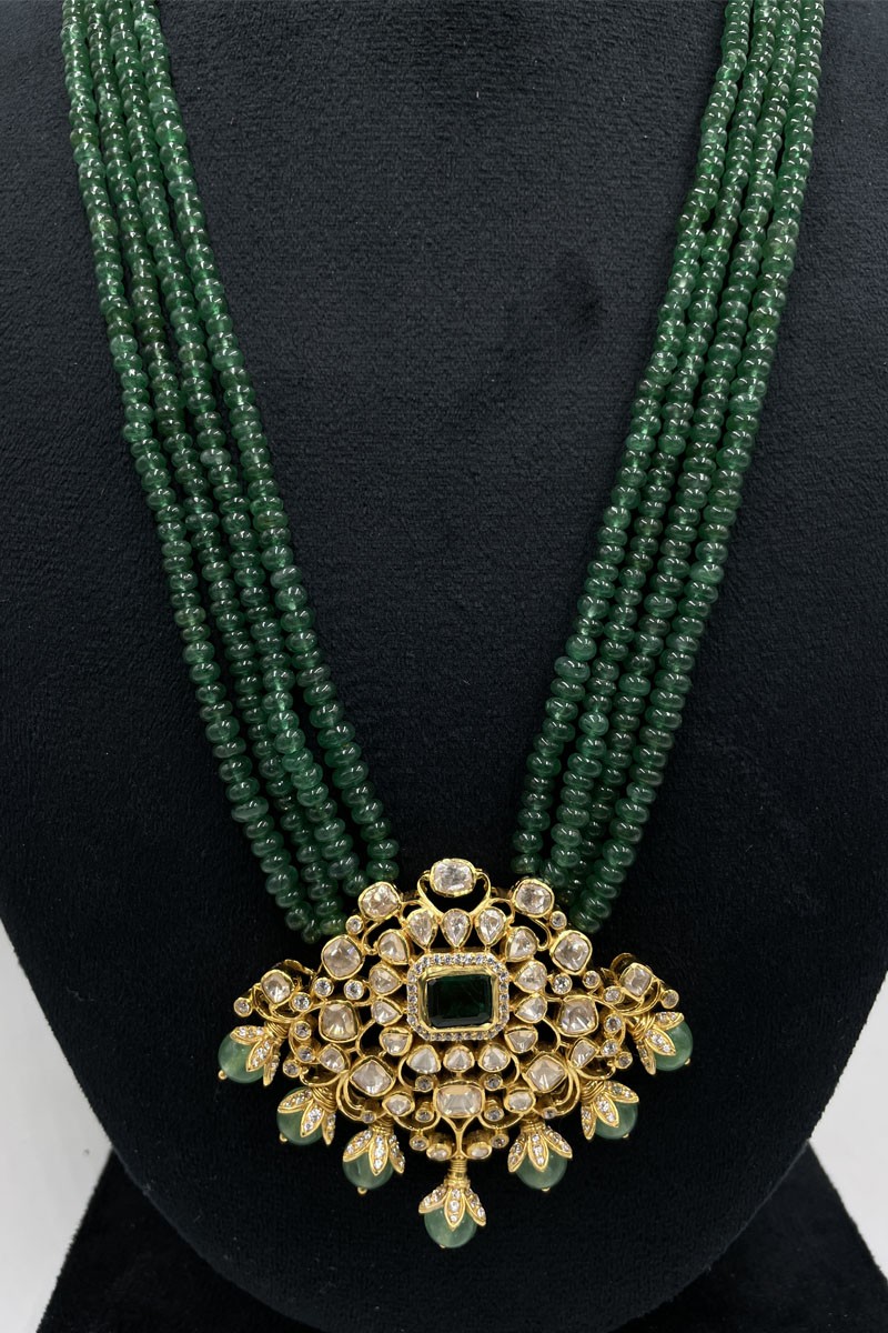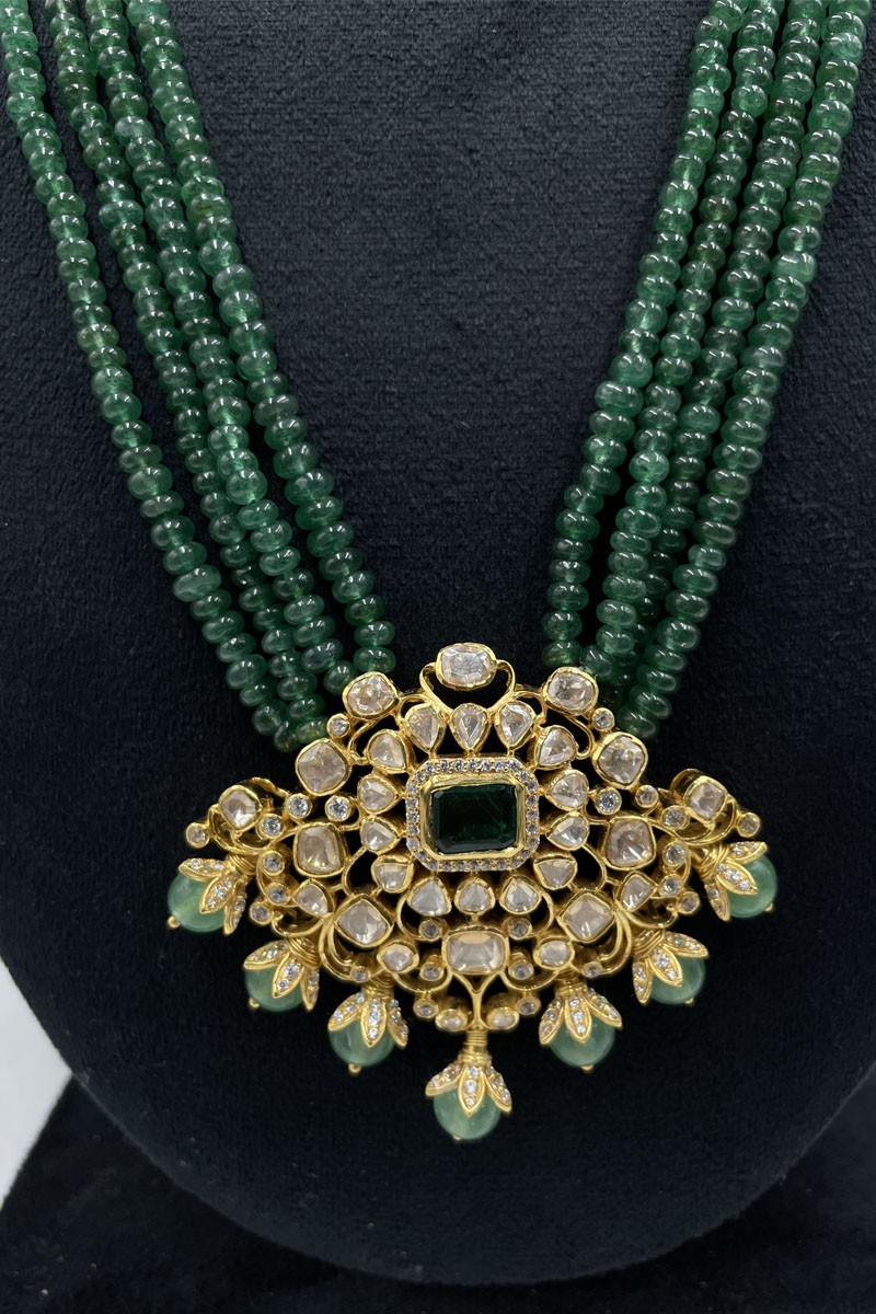 92.5 Silver Moissanite Polki Pendant, Wedding Jewelry, Bridal Jewelry, Silver Pendant Necklace Natural Green Beads Pendant Uncut Moissanite Polki .